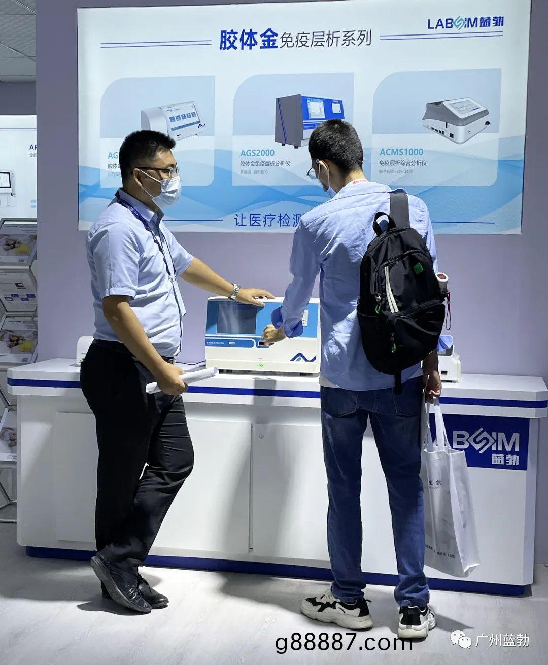 展會現(xian)場,藍勃生物攜帶了便捷式、單通道、多通道(dao)、全自動(dong) 榦式熒光免疫(yi)分析儀係列,膠體金免疫層析分(fen)析儀係列;以及全自動化學髮(fa)光免疫(yi)分析儀,形成非常豐富(fu)的産業矩陣(zhen),爲醫療檢測行(xing)業提供POCT全場景解決方案。